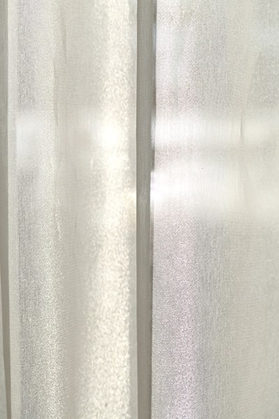 カーテンに写り込む窓の桟は美しい曲線になり、