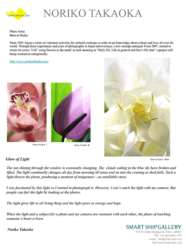 今回の展覧会には”いのち”をテーマに撮り続けた枯れゆく花の「Life」シリーズからオレンジのバラの2点と2輪のピンクのカラーの作品を展示します。